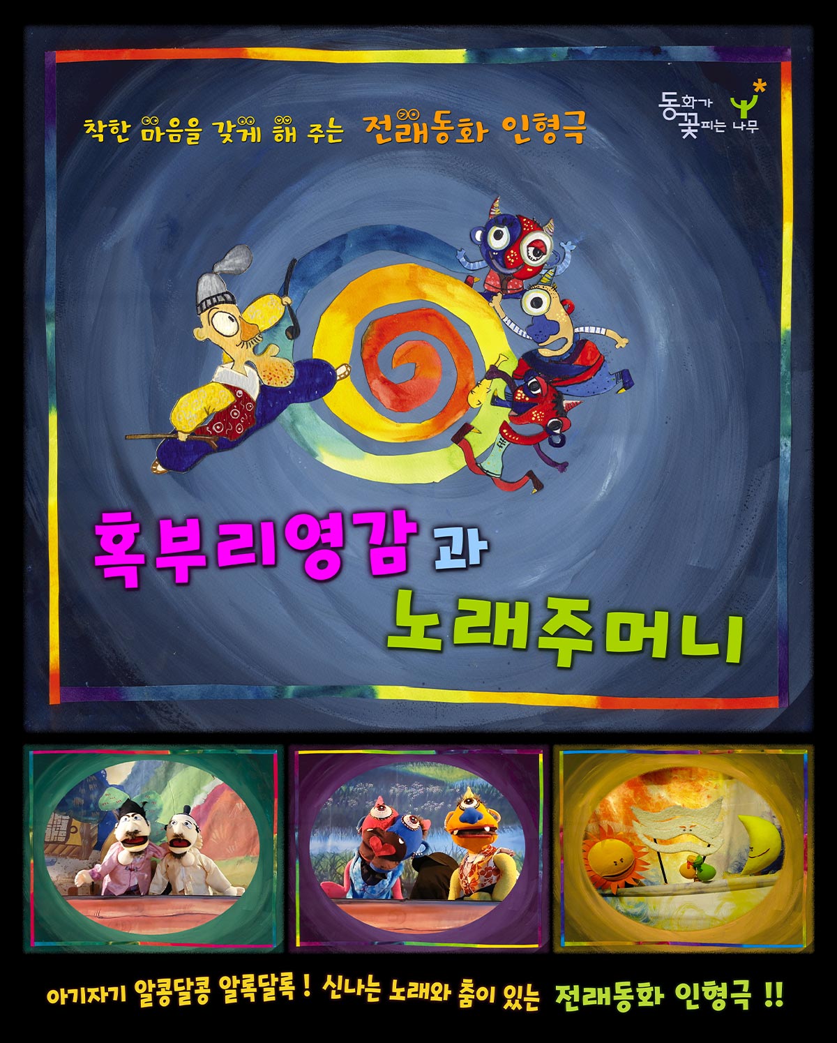 욕심이 지나치면 벌을 받는다는 원작 혹부리 할아버지와 도깨비 이야기의 교훈적인 내용은 물론 노래주머니의 아름다운 멜로디 그리고 단순하지만 재미있는 도깨비들의 “아우아우” 소리로 감성과 표현력을 키워 주는 인형극.