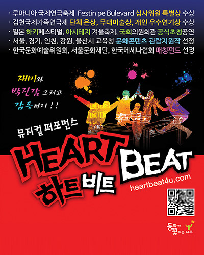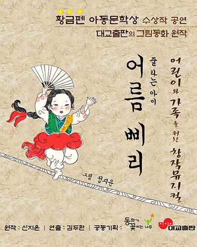 뮤지컬·연극 - 뮤지컬·연극 리스트 - 뮤지컬 [깃털피리] - 뮤지컬 [아빠의 반딧불이] - 뮤지컬 [입냄새 왕 구리구리] - 연극 [구공탄 눈사람] - 뮤지컬 퍼포먼스 [하트비트] - 뮤지컬 [똥장군 구리구리] - 뮤지컬 [색깔나라의 요술램프] - 뮤지컬 [어름삐리] - 뮤지컬 [떴다 빵구차] - 뮤지컬 [깨비숲 소리통] - 뮤지컬 [김로미도령과 이줄리낭자] - 뮤지컬 [크리스마스 캐럴] - [연극] 마마스토리 - 락뮤지컬 [의자 뺏기] ⊙ 어린이 창작뮤지컬(가족뮤지컬), 청소년 뮤지컬, 연극 - 올해 공연 가능 작품 [어린이 창작뮤지컬(가족뮤지컬)] 자존감 향상, 꿈과 희망, 도전장애이해교육, 차이인식개선 [어린이 창작뮤지컬(가족뮤지컬)] 깨끗한 환경, 건강한 생활, 가족애, 희망※ 보건 주제 공연시 : 금연, 절주 내용 추가 [어린이 창작뮤지컬(건강뮤지컬)] 건강(음식섭취/구강), 안전, 협동구강보건(건강) 교육뮤지컬 [연극(가족극)] 감성음악극, 퍼포먼스극사랑, 우정, 희생, 배려 [청소년 뮤지컬] 청소년극(만 10세 이상)생명존중, 학교폭력예방, 자살예방, 인성 ⊙ 어린이 창작뮤지컬(가족뮤지컬), 청소년 뮤지컬 - 기타작품(올해 공연 불가) 건강.영양.자신감.용기.우정 환경.건강.아토피.우정.사랑 전통.서민애환.남사당 실종.유괴예방.안전교육 전통.욕심없이나누는기쁨 전통.놀이콘서트.사랑 사랑과온정.삶의반성 가족애.사랑.환경.상상력 진로(꿈과미래).가족애.우애 뮤지컬·연극 뮤지컬·연극 리스트 뮤지컬 [깃털피리] 뮤지컬 [아빠의 반딧불이] 뮤지컬 [입냄새 왕 구리구리] 연극 [구공탄 눈사람] 뮤지컬 퍼포먼스 [하트비트] 뮤지컬 [똥장군 구리구리] 뮤지컬 [색깔나라의 요술램프] 뮤지컬 [어름삐리] 뮤지컬 [떴다 빵구차] 뮤지컬 [깨비숲 소리통] 뮤지컬 [김로미도령과 이줄리낭자] 뮤지컬 [크리스마스 캐럴] [연극] 마마스토리 락뮤지컬 [의자 뺏기]