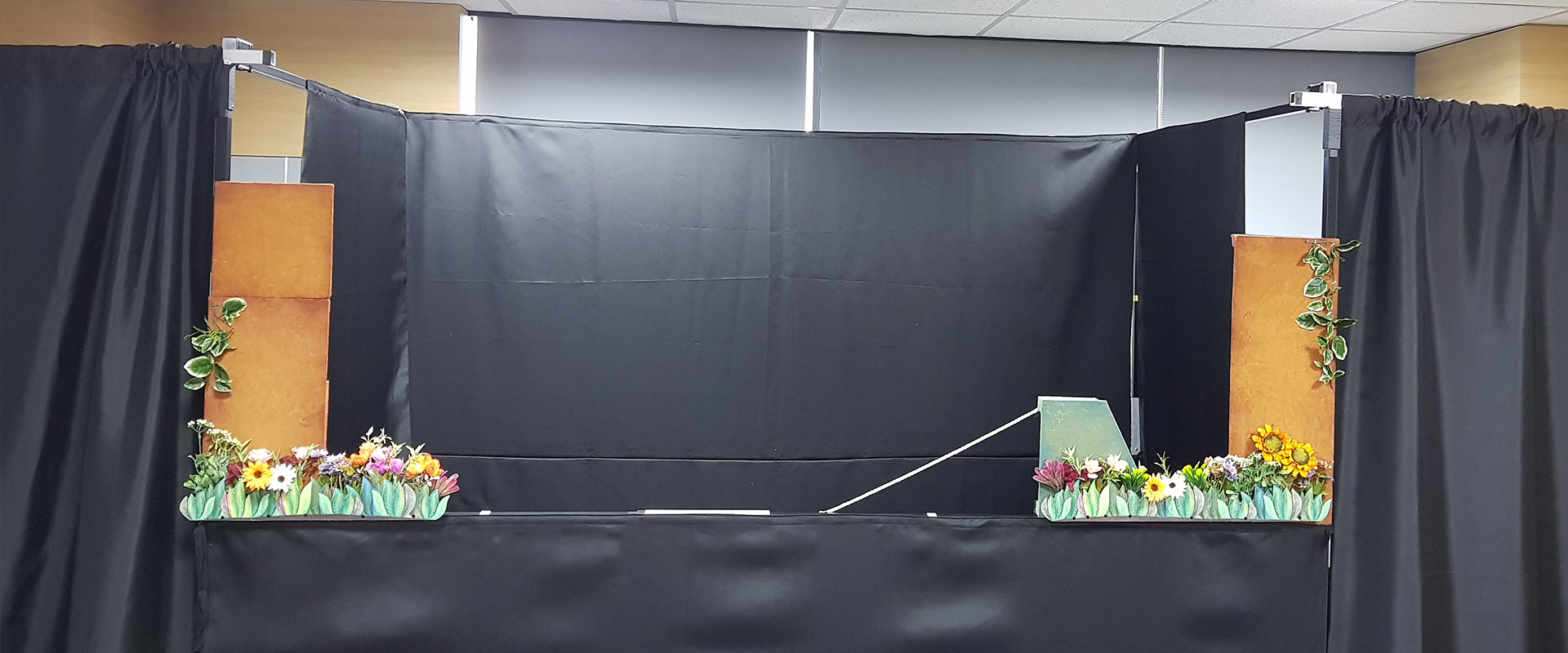 1_1. 손인형극·막대인형극 기본무대 : 가장 기본적으로 많이 사용하는 인형극 무대입니다.