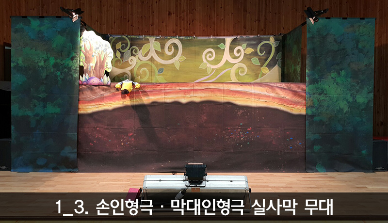 1_3. 손인형극·막대인형극 실사막 무대 : A 기본무대에서 검은색 막을 사용하지 않고 실사막으로 대체해여 제작합니다.