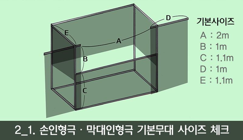 ※ 아래 사진 2_1(손인형극무대), 2_2(그림자극무대)의 A~E의 사이즈를 알려주세요.