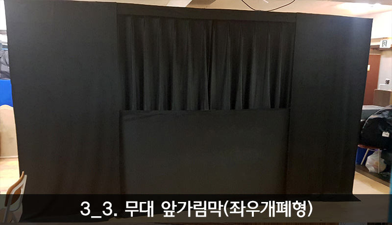 3. 무대 앞가림막은 좌우개패식, 모형막형식(상하개패식)이 가능합니다.