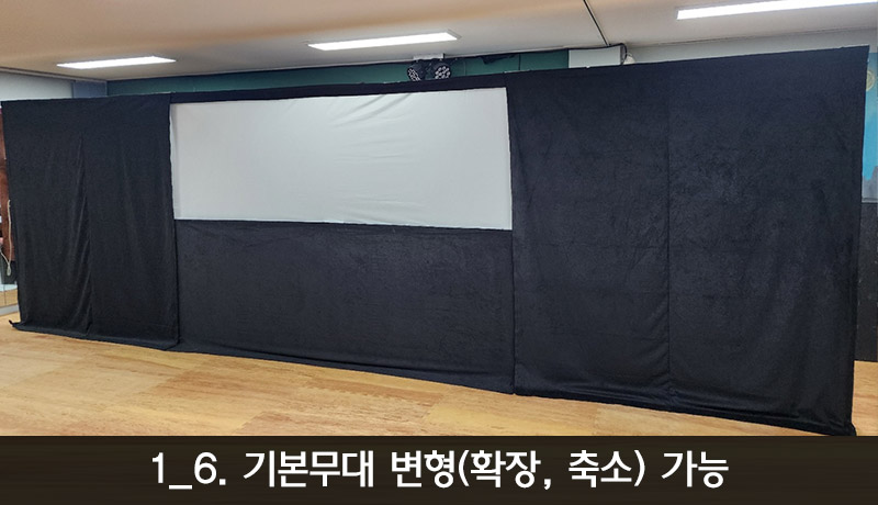 1_6. 기본무대 변형(확장,축소) : 인형극 및 동극을 위한 기본무대에서 희망하시는 무대로 변형 제작이 가능합니다.