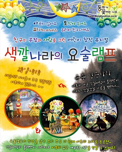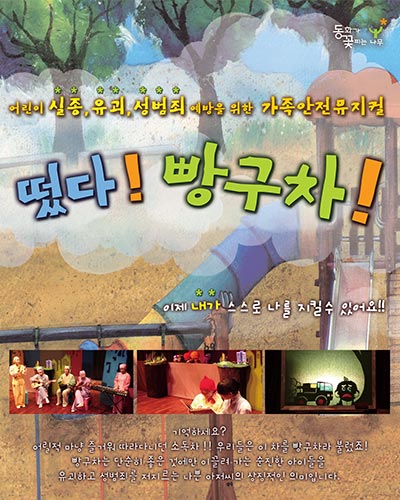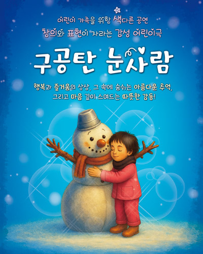 뮤지컬·연극 - 뮤지컬·연극 리스트 - 뮤지컬 [깃털피리] - 뮤지컬 [아빠의 반딧불이] - 뮤지컬 [입냄새 왕 구리구리] - 연극 [구공탄 눈사람] - 뮤지컬 퍼포먼스 [하트비트] - 뮤지컬 [똥장군 구리구리] - 뮤지컬 [색깔나라의 요술램프] - 뮤지컬 [어름삐리] - 뮤지컬 [떴다 빵구차] - 뮤지컬 [깨비숲 소리통] - 뮤지컬 [김로미도령과 이줄리낭자] - 뮤지컬 [크리스마스 캐럴] - [연극] 마마스토리 - 락뮤지컬 [의자 뺏기] ⊙ 어린이 창작뮤지컬(가족뮤지컬), 청소년 뮤지컬, 연극 - 올해 공연 가능 작품 [어린이 창작뮤지컬(가족뮤지컬)] 자존감 향상, 꿈과 희망, 도전장애이해교육, 차이인식개선 [어린이 창작뮤지컬(가족뮤지컬)] 깨끗한 환경, 건강한 생활, 가족애, 희망※ 보건 주제 공연시 : 금연, 절주 내용 추가 [어린이 창작뮤지컬(건강뮤지컬)] 건강(음식섭취/구강), 안전, 협동구강보건(건강) 교육뮤지컬 [연극(가족극)] 감성음악극, 퍼포먼스극사랑, 우정, 희생, 배려 [청소년 뮤지컬] 청소년극(만 10세 이상)생명존중, 학교폭력예방, 자살예방, 인성 ⊙ 어린이 창작뮤지컬(가족뮤지컬), 청소년 뮤지컬 - 기타작품(올해 공연 불가) 건강.영양.자신감.용기.우정 환경.건강.아토피.우정.사랑 전통.서민애환.남사당 실종.유괴예방.안전교육 전통.욕심없이나누는기쁨 전통.놀이콘서트.사랑 사랑과온정.삶의반성 가족애.사랑.환경.상상력 진로(꿈과미래).가족애.우애 뮤지컬·연극 뮤지컬·연극 리스트 뮤지컬 [깃털피리] 뮤지컬 [아빠의 반딧불이] 뮤지컬 [입냄새 왕 구리구리] 연극 [구공탄 눈사람] 뮤지컬 퍼포먼스 [하트비트] 뮤지컬 [똥장군 구리구리] 뮤지컬 [색깔나라의 요술램프] 뮤지컬 [어름삐리] 뮤지컬 [떴다 빵구차] 뮤지컬 [깨비숲 소리통] 뮤지컬 [김로미도령과 이줄리낭자] 뮤지컬 [크리스마스 캐럴] [연극] 마마스토리 락뮤지컬 [의자 뺏기]