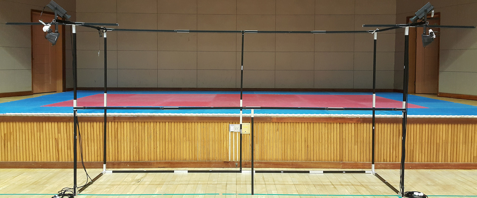 2. 프레임은 알루미늄 사각파이프로 제작되며 사진 2_3과 같이 약 1미터 단위로 확장이 가능합니다.
