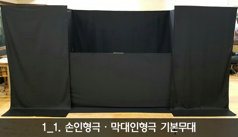 1_1. 손인형극·막대인형극 기본무대 : 가장 기본적으로 많이 사용하는 인형극 무대입니다.