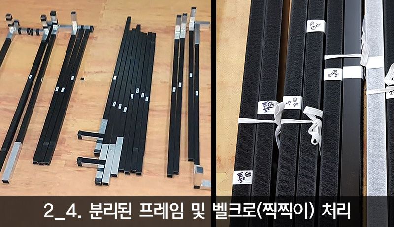 3. 프레임에 벨크로(찍찍이)로 무대막을 붙일 수 있도록 하여 설치 및 해체가 간편합니다.