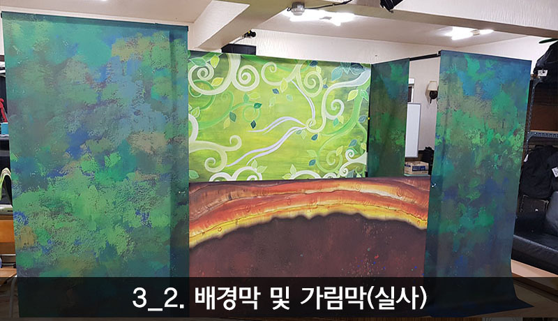 1_3. 손인형극·막대인형극 실사막 무대 : A 기본무대에서 검은색 막을 사용하지 않고 실사막으로 대체해여 제작합니다.